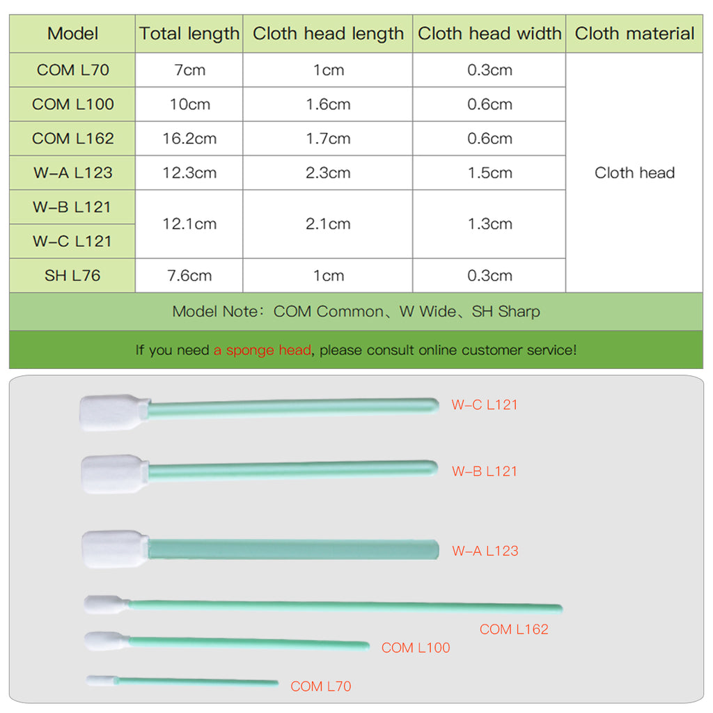The swab stick is usually made of PP or nylon material, offering sufficient hardness without damaging the lens edge.